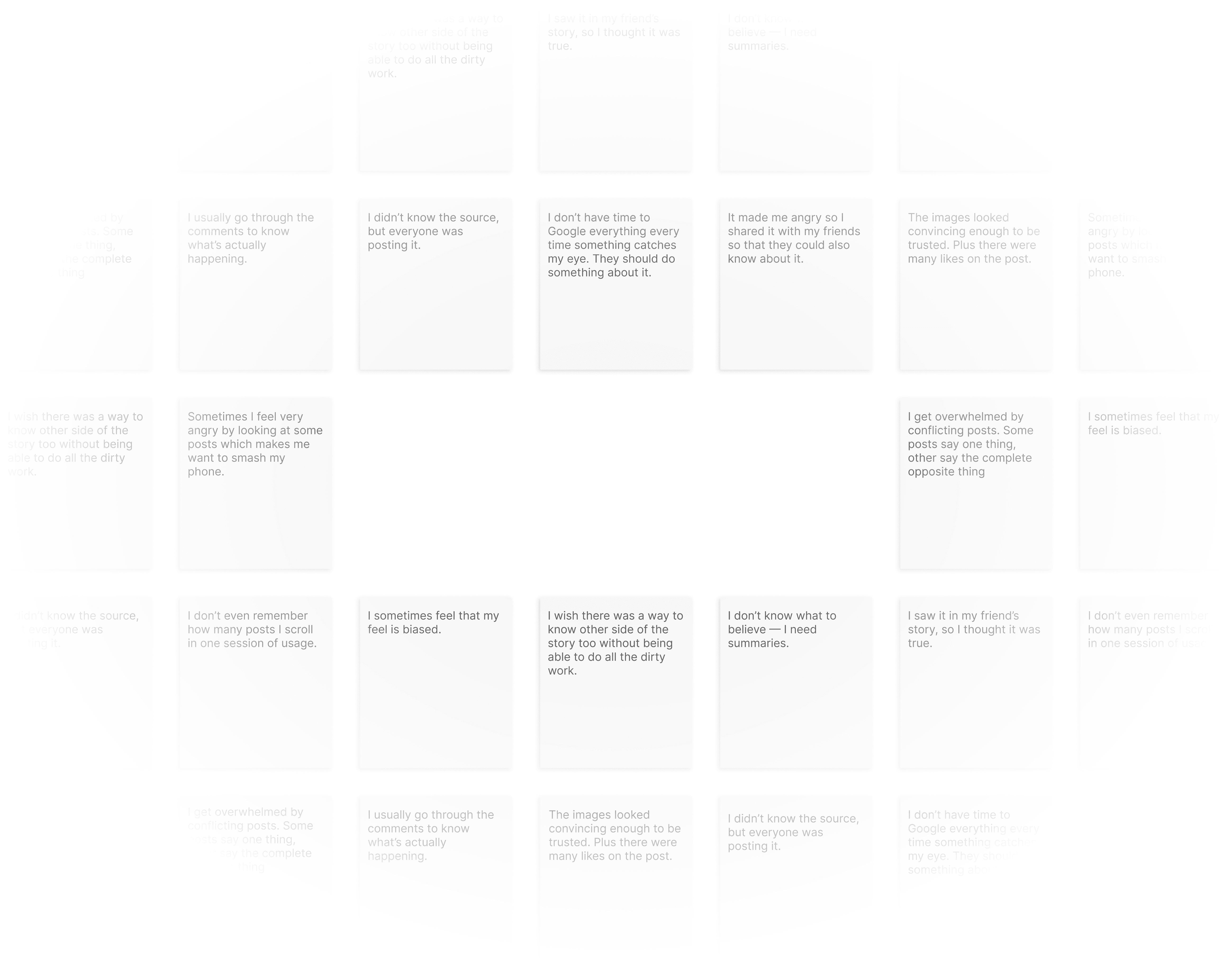 Before designing solutions, I needed to transform an abstract issue — misinformation — into something users could actually see, feel, and act on.